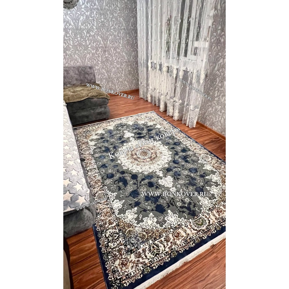 Шикарный Турецкий Ковер Для Медальон Дизайн 30573 Синий наполняет интерьер квартиры теплом и уютом, гармонично сочетает в себе изящество и красоту. Он соткан из износостойких материалов, комфортный и долговечный.
